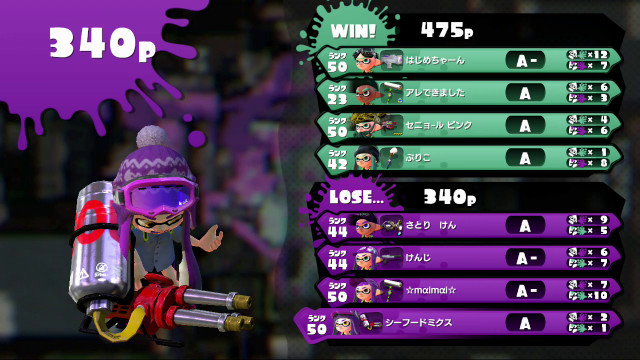 | Splattershot Jr. | 50 | A- | 12 / 7 > | 1.71 | 63.2% | |
