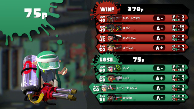 | Splattershot Jr. | 50 | A+ | 4 / 7 < | 0.57 | 36.4% | |
