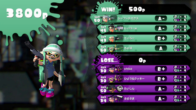 | Splattershot Jr. | 45 | A- | 8 / 2 > | 4.00 | 80.0% | |