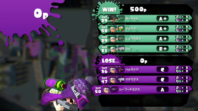 | Splattershot Jr. | 47 | C | 1 / 1 = | 1.00 | 50.0% | |