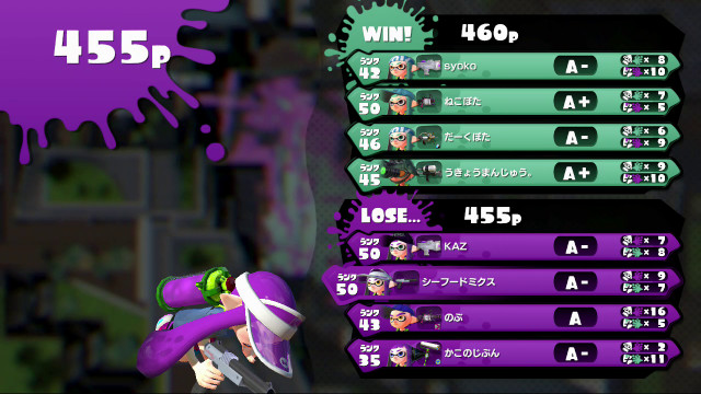| Splattershot Jr. | 50 | A- | 7 / 8 < | 0.88 | 46.7% | |