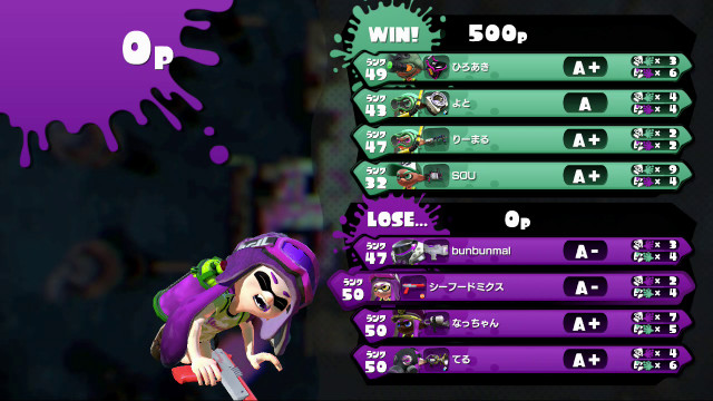 | Splattershot Jr. | 47 | A- | 3 / 4 < | 0.75 | 42.9% | |