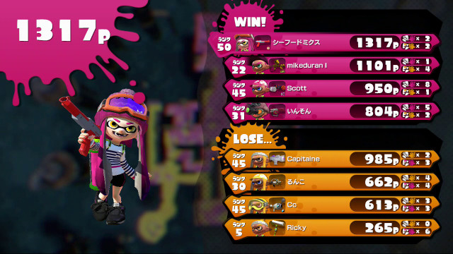 | Splattershot Jr. | 45 | 985 | 2 / 3 < | 0.67 | 40.0% | |