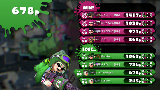 | Splattershot Jr. | 50 | 971 | 1 / 1 = | 1.00 | 50.0% | |