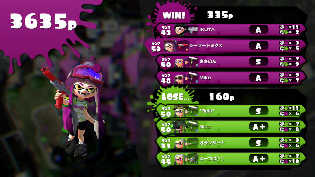 | Splattershot Jr. | 43 | A | 11 / 2 > | 5.50 | 84.6% | |