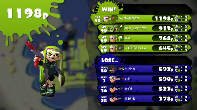| Splattershot | 50 | 768 | 4 / 6 < | 0.67 | 40.0% | |