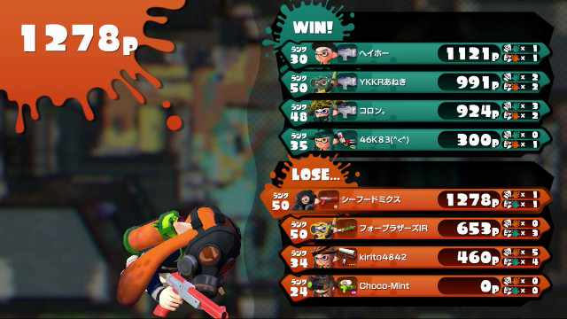 | Splattershot Jr. | 48 | 924 | 3 / 2 > | 1.50 | 60.0% | |