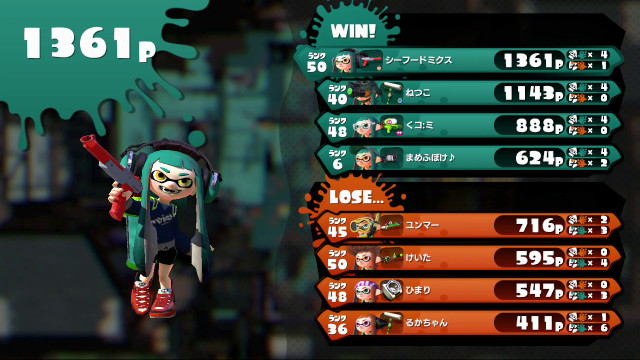 | Splat Roller | 36 | 411 | 1 / 6 < | 0.17 | 14.3% | |