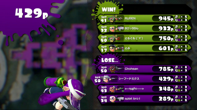 | Splattershot Jr. | 32 | 932 | 2 / 2 = | 1.00 | 50.0% | |