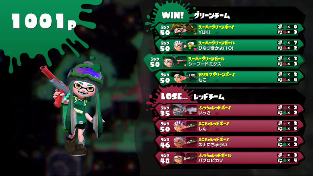 | Splattershot Jr. | 35 | 2 / 2 = | 1.00 | 50.0% | |