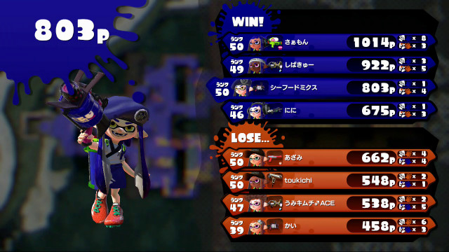 | Tentatek Splattershot | 50 | 1,014 | 8 / 3 > | 2.67 | 72.7% | |