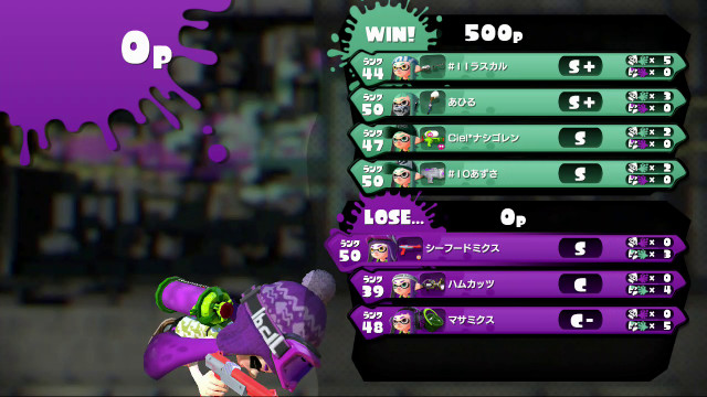 | Splattershot Jr. | 50 | S | 2 / 0 > | 99.99 | 100.0% | |