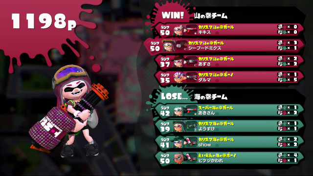 | Splattershot | 41 | 2 / 2 = | 1.00 | 50.0% | |