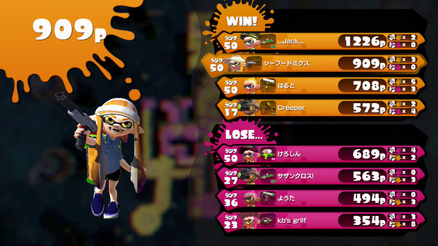 | Tentatek Splattershot | 50 | 689 | 4 / 2 > | 2.00 | 66.7% | |