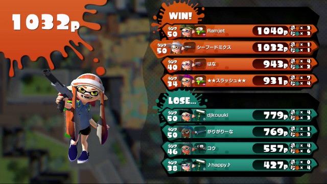| Tentatek Splattershot | 34 | 931 | 7 / 4 > | 1.75 | 63.6% | |
