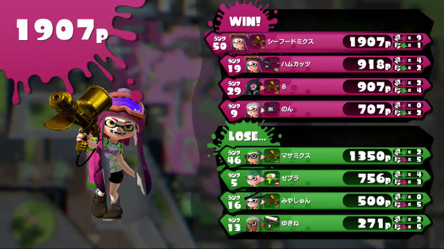 | Tentatek Splattershot | 5 | 756 | 4 / 3 > | 1.33 | 57.1% | |