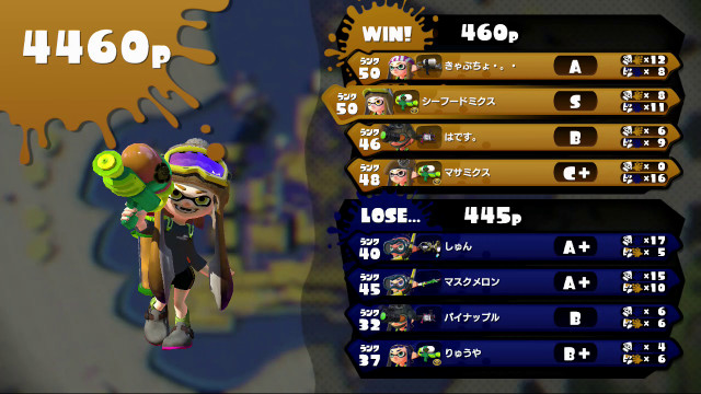 | Wasabi Splattershot | 50 | S | 8 / 11 < | 0.73 | 42.1% | |