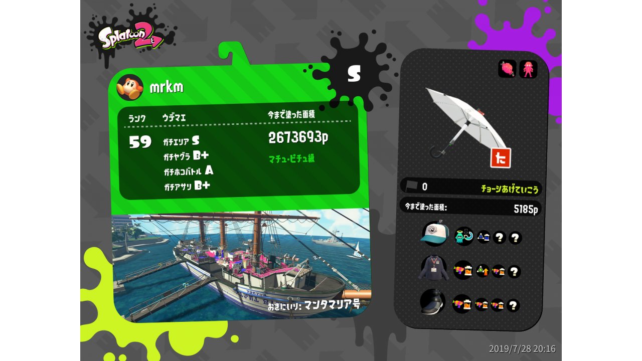| Weapon | Kensa Undercover Brella ( Torpedo, Ink Armor) | |||||||||||||||||||||||||||||||