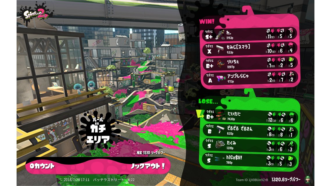 | Mode | Splat Zones - League Battle (Quad) | ||||||||||||||||||||||||||||||||||