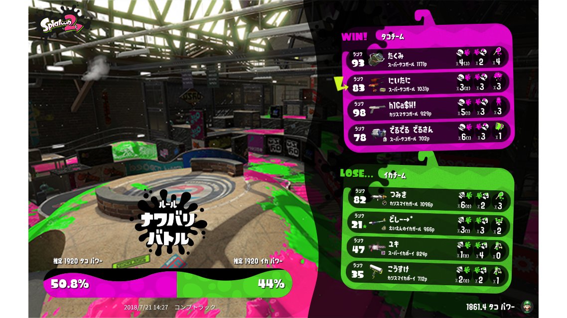 | Splatfest Title | タコ Defender 23 → タコ Defender 32 | |||||||||||||||||||||||||||||||||||||
