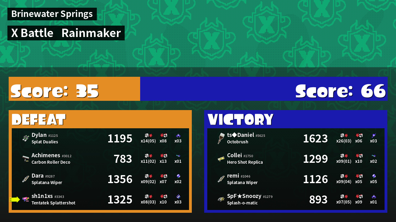 | Weapon | Tentatek Splattershot ( Splat Bomb / Triple Inkstrike) | ||