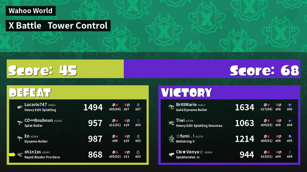 | Mode | Tower Control - X Battle | ||