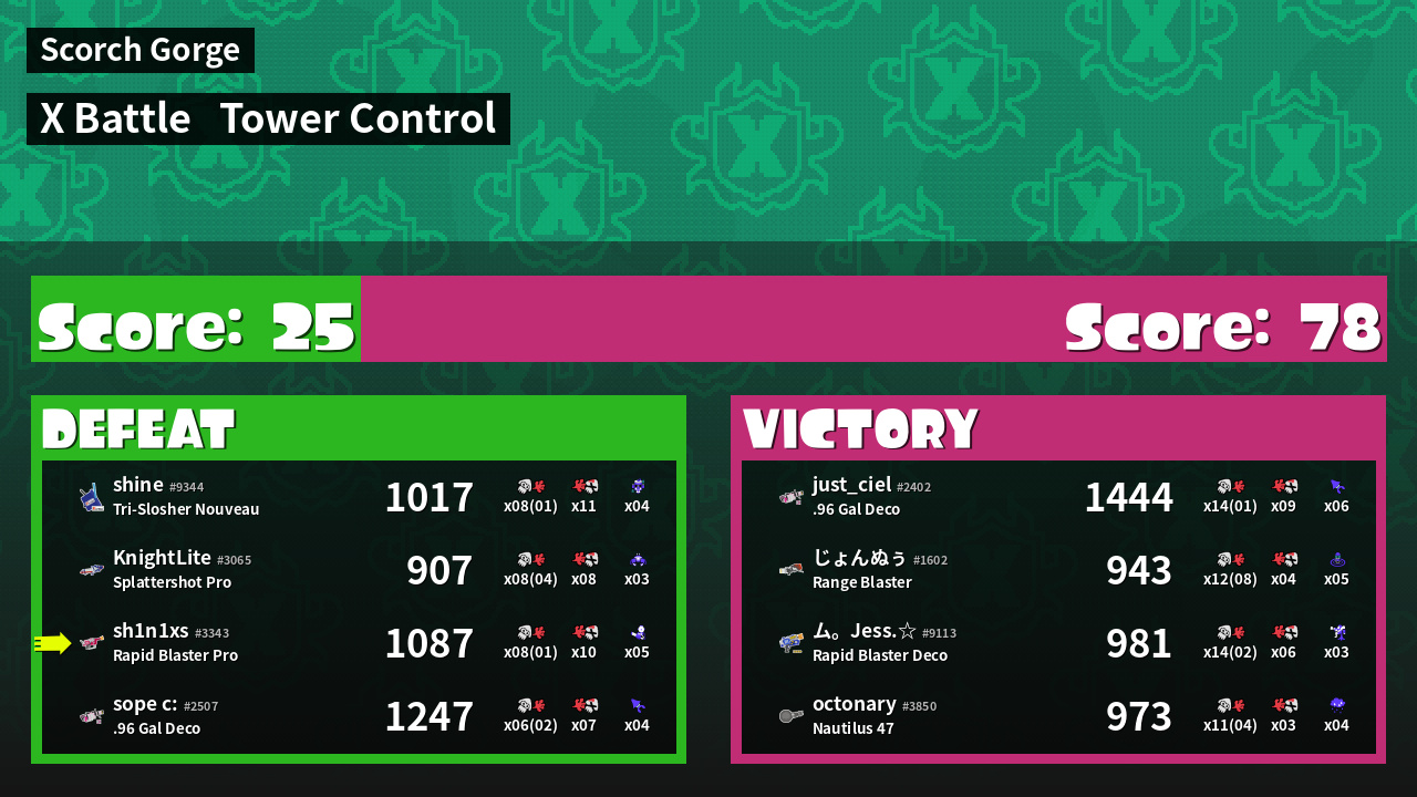 | Medals | #1 Overall Splatter #1 Enemy Splatter #1 Tower Stopper | ||