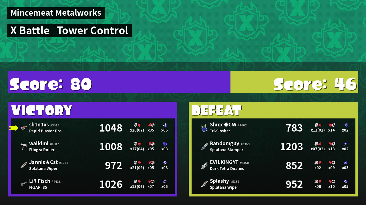 | Mode | Tower Control - X Battle | ||