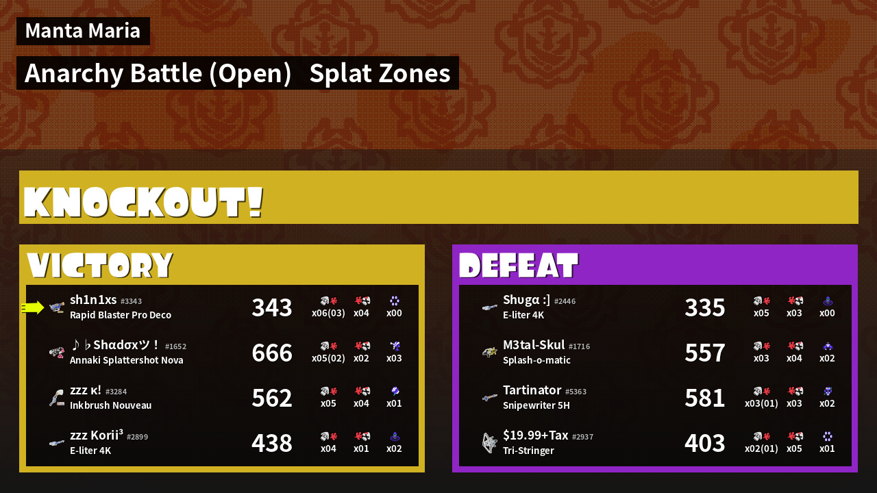 | Mode | Splat Zones - Anarchy Battle (Open) | ||