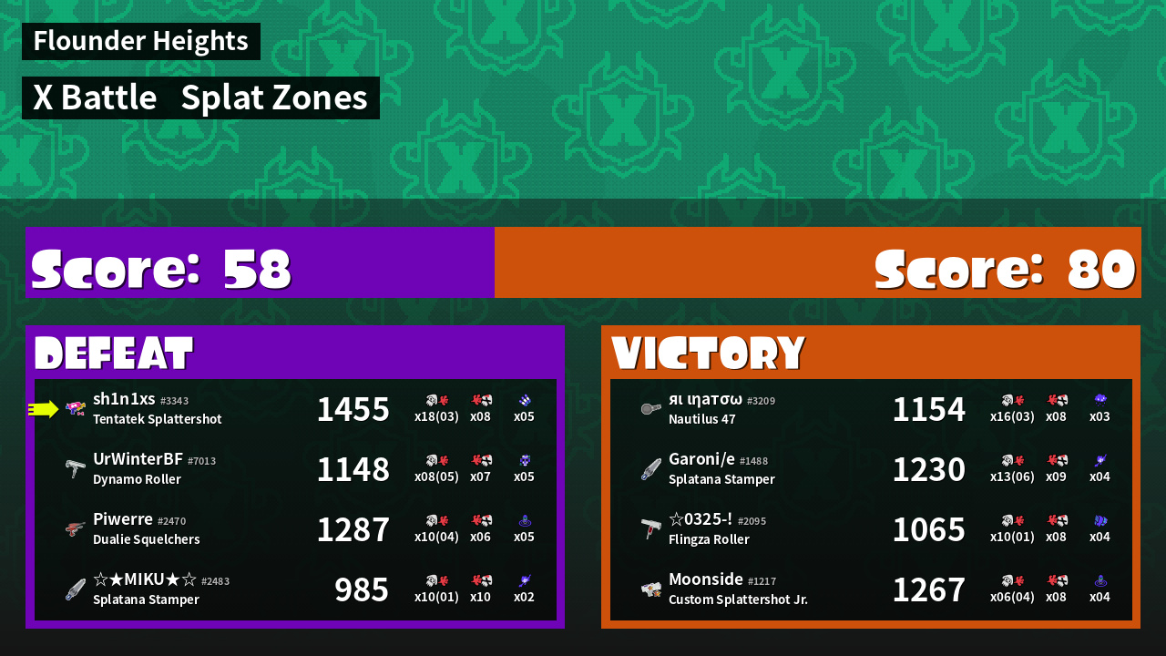 | Mode | Splat Zones - X Battle | ||