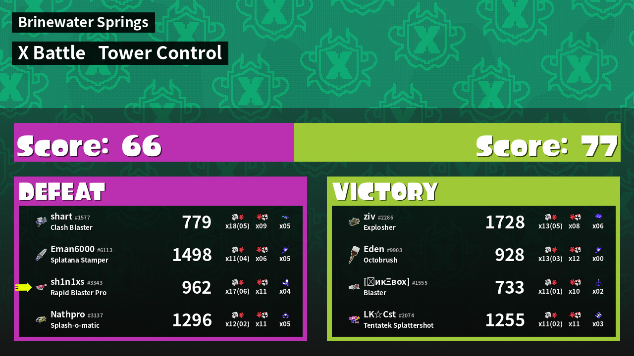 | Medals | #1 Splat Assister #1 Checkpoint Breaker #1 Tower Stopper | ||