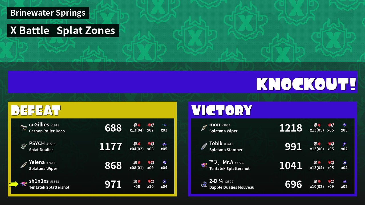 | Weapon | Tentatek Splattershot ( Splat Bomb / Triple Inkstrike) | ||