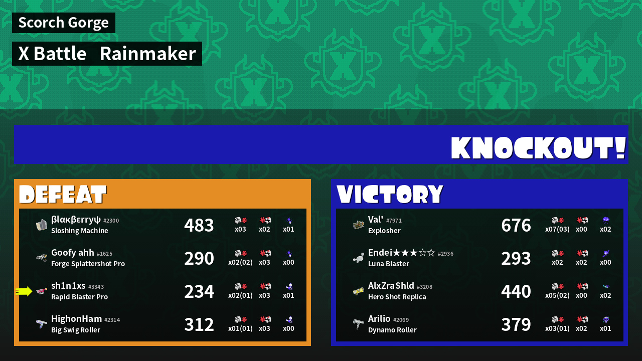 | Medals | #2 Overall Splatter #2 Enemy Splatter #2 Splat Assister | ||