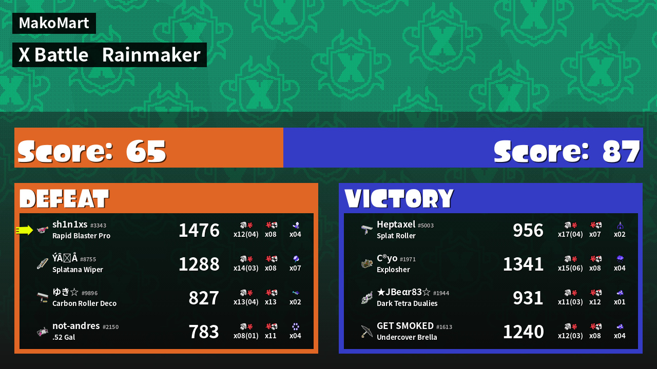 | Mode | Rainmaker - X Battle | ||