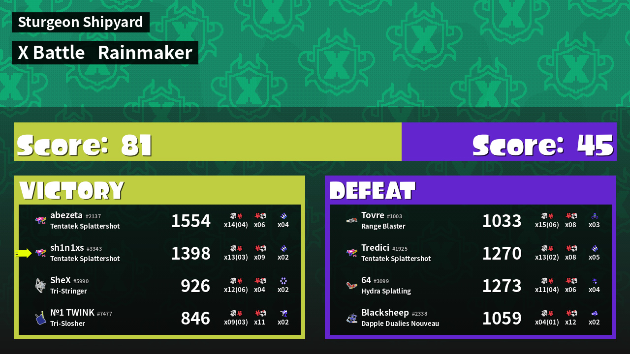 | Weapon | Tentatek Splattershot ( Splat Bomb / Triple Inkstrike) | ||