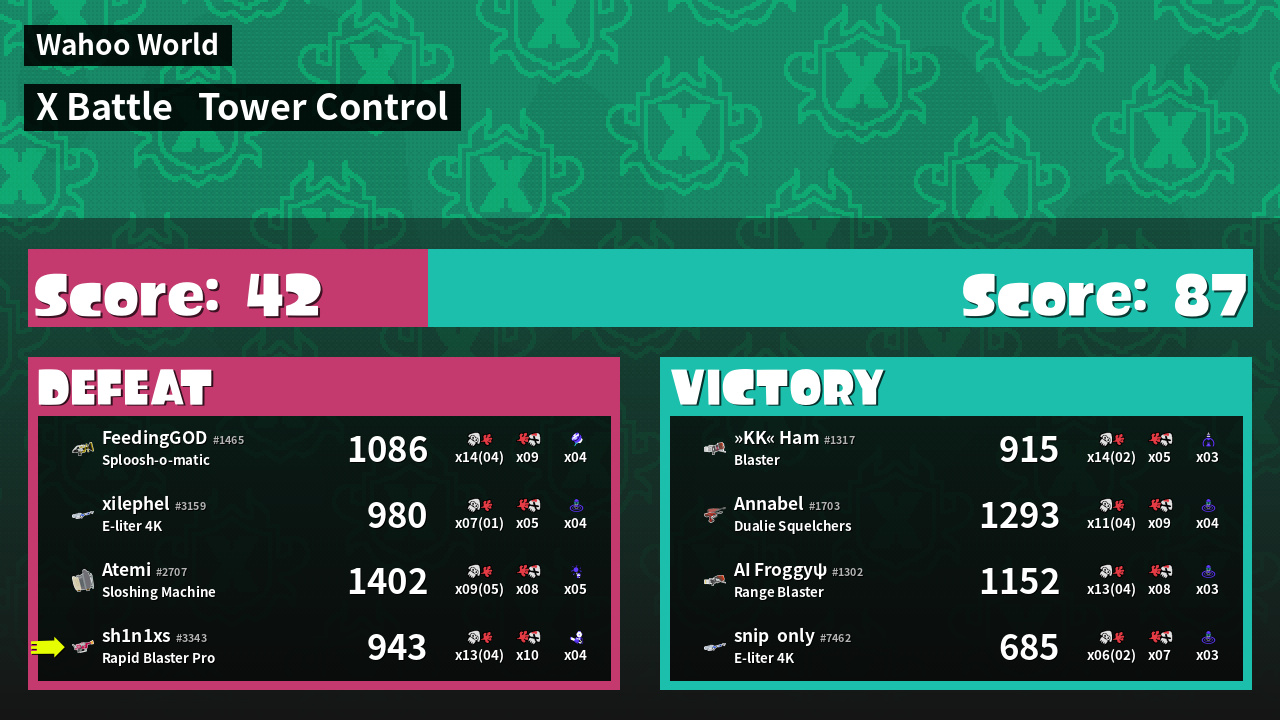 | Kills / Deaths | 9 + 4 / 10 < Kill Ratio: 0.90 | ||