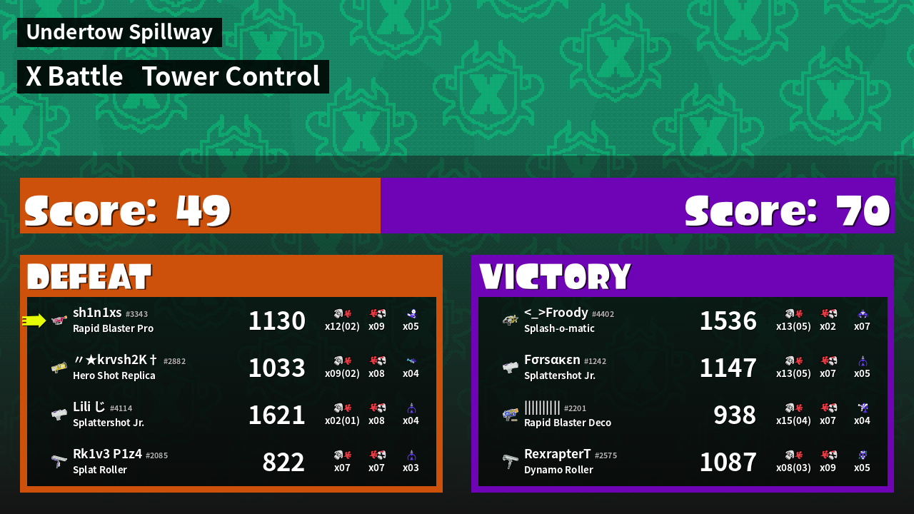 | Medals | #1 Overall Splatter #1 Score Booster Record-Score Setter | ||