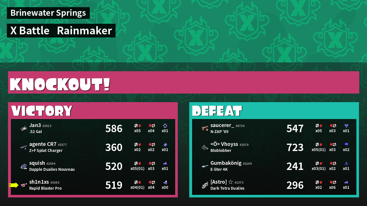 | Medals | #1 Splat Assister #1 Checkpoint Breaker #1 Rainmaker Stopper | ||