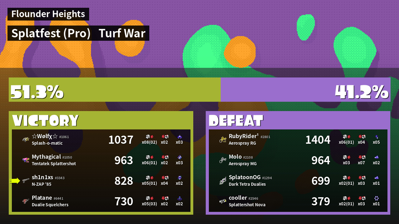 | Mode | Turf War - Splatfest (Pro) | ||