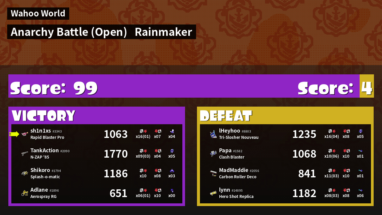 | Mode | Rainmaker - Anarchy Battle (Open) | ||
