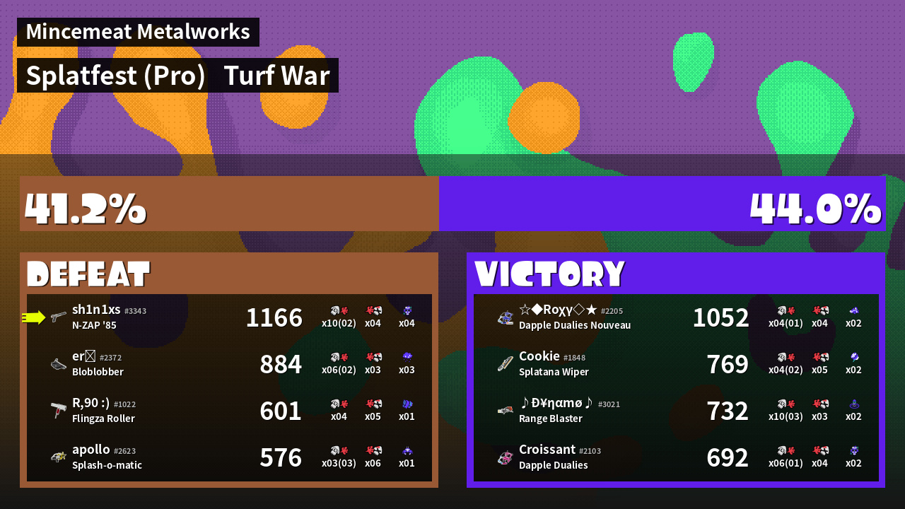 | Medals | #1 Overall Splatter #1 Turf Inker #1 Enemy-Base Inker | ||