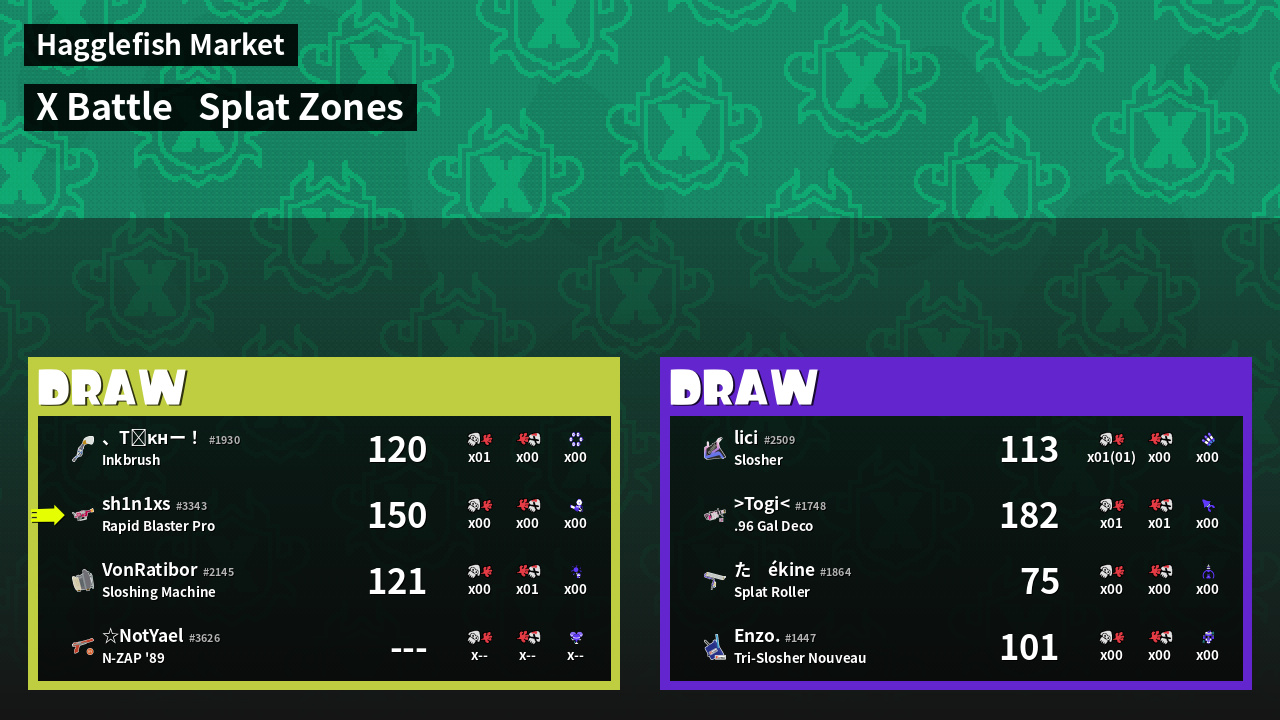 | Mode | Splat Zones - X Battle | ||