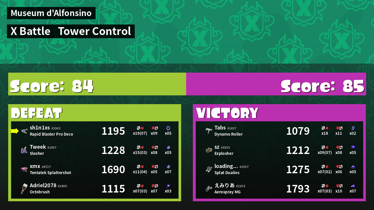 | Medals | #1 Overall Splatter #1 Popular Target #1 Super Jump Spot | ||