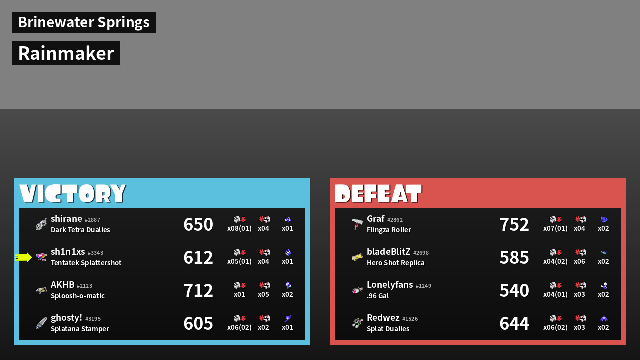 | Weapon | Tentatek Splattershot ( Splat Bomb / Triple Inkstrike) | ||
