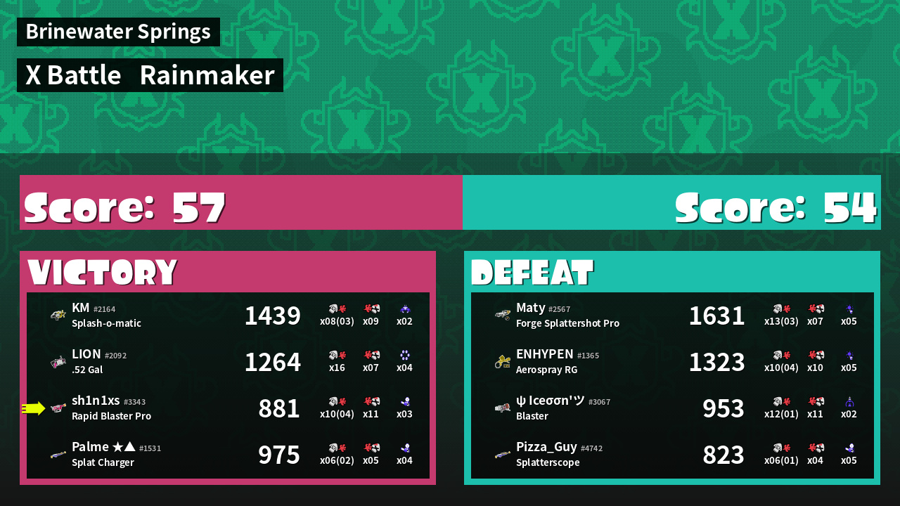 | Medals | #1 Splat Assister #1 Checkpoint Breaker #1 Ground Traveler | ||