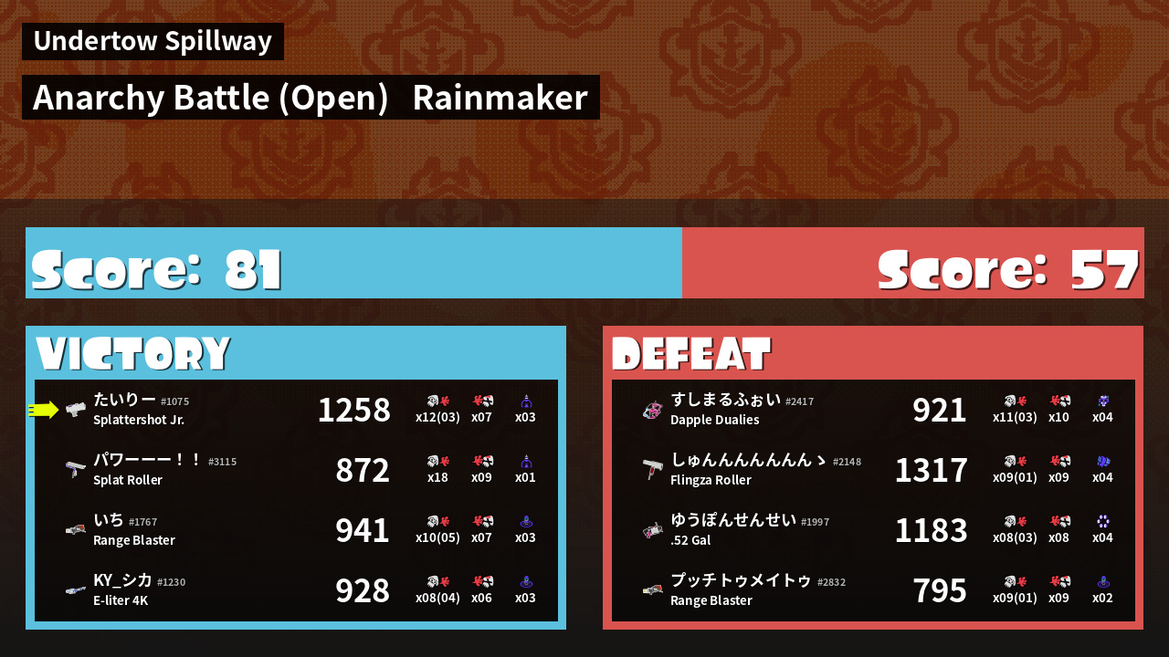 | Mode | Rainmaker - Anarchy Battle (Open) | ||