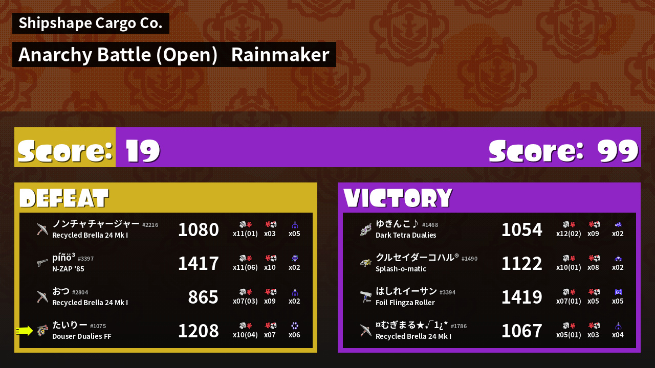 | Mode | Rainmaker - Anarchy Battle (Open) | ||
