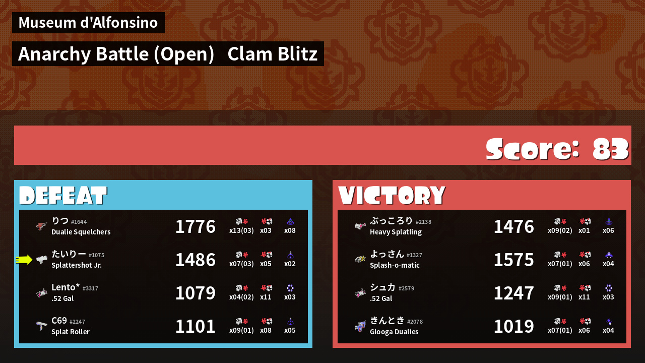 | Mode | Clam Blitz - Anarchy Battle (Open) | ||