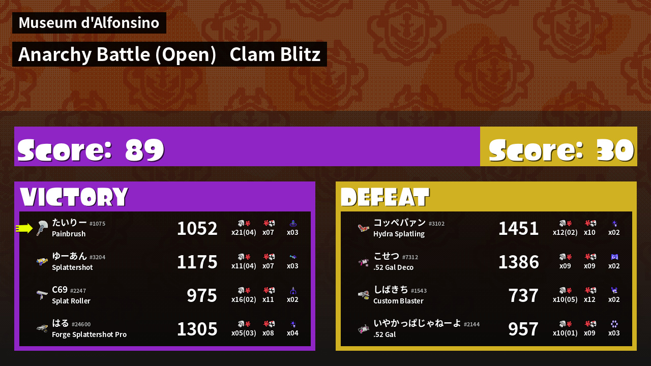 | Mode | Clam Blitz - Anarchy Battle (Open) | ||