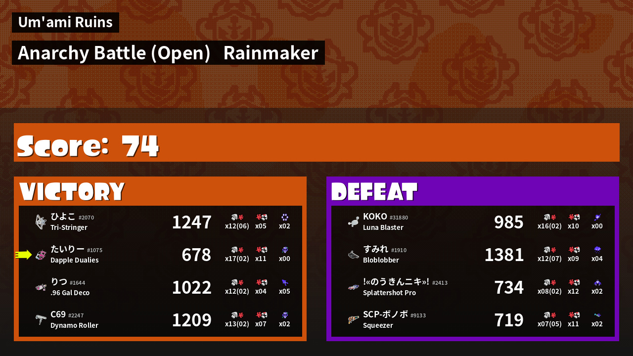 | Mode | Rainmaker - Anarchy Battle (Open) | ||